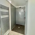 The Helmsley accommodation includes a bathroom with a roll-in shower and a separate toilet. Also, there are hairdryers and towels for guests' comfort.